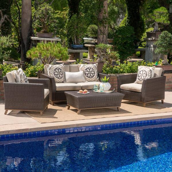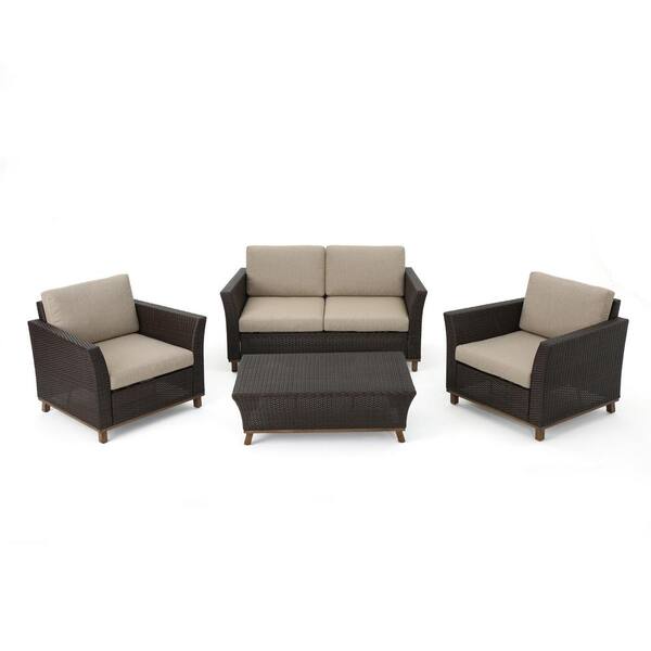 Mixed Brown 4-Piece Plastic Patio Conversation Set with Mixed Beige Cushions