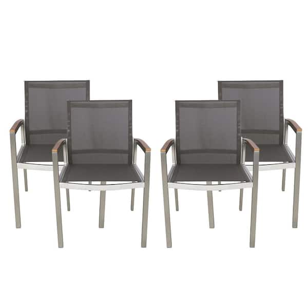 Moralis Silver Aluminum and Gray Mesh Outdoor Dining Chairs (4-Pack)
