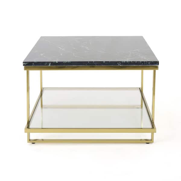 Mytch 36 in. Marble/Gold Medium Rectangle Marble Coffee Table with Steel Frame