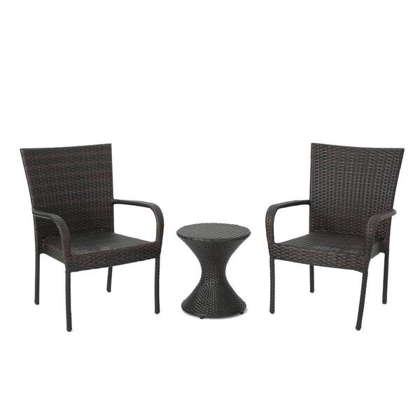 Newport Multi-Brown 3-Piece Faux Rattan Outdoor Patio Conversation Seating Set
