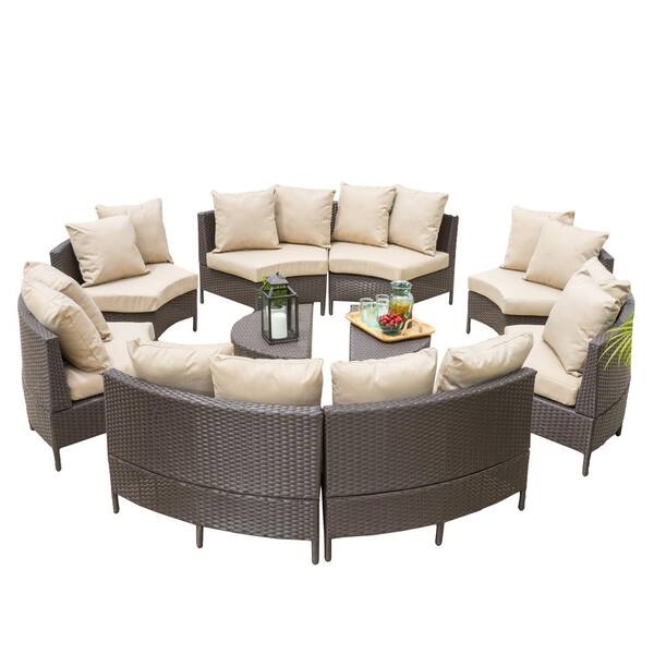 Newton Dark Brown 10-Piece Faux Rattan Outdoor Patio Sectional Set with Taupe Cushions