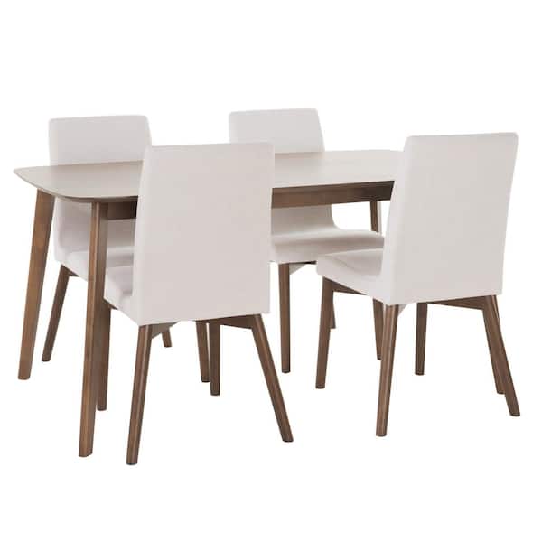 Orrin 5-Piece Light Beige and Natural Walnut Dining Set
