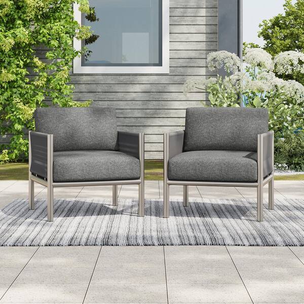 Patio Silver Aluminum Frame Outdoor Lounge Chair with Dark Grey Cushions (2-Pack)