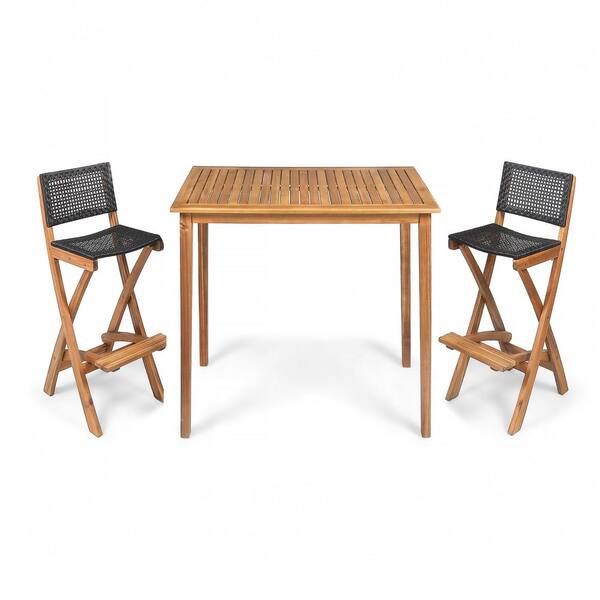 Polaris Natural 3-Piece Wood Rectangle 41 in. Patio Outdoor Serving Bar Set