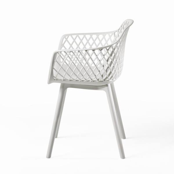 Poppy White Patterned Resin Outdoor Patio Dining Chair (4-Pack)