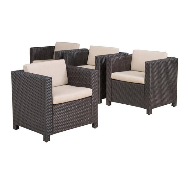 Puerta Dark Brown 5-Piece Faux Rattan Patio Conversation Set with Beige Cushions