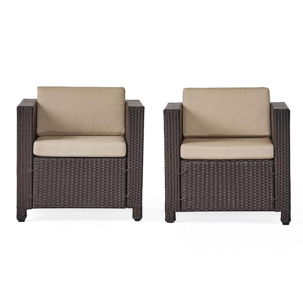 Puerta Dark Brown Wicker Outdoor Patio Club Lounge Chairs with Beige Cushions (2-Pack)