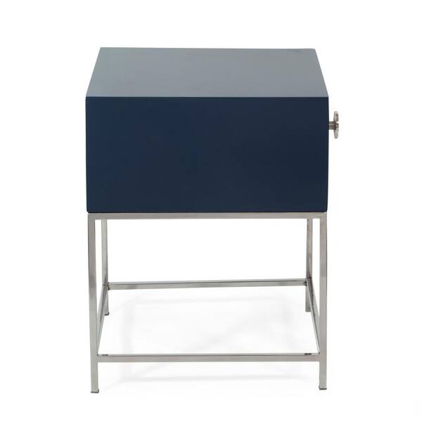 Rafter 1-Drawer Navy Blue and Nickel Moroccan Mesh Nightstand 21 in. x 16.5 in. x 15 in.
