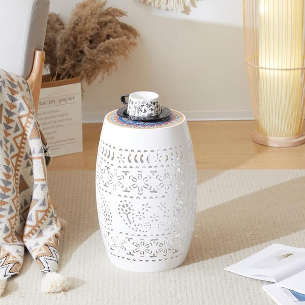 Rista White Iron Outdoor Patio and Indoor Side Table with Mosaic Top Design