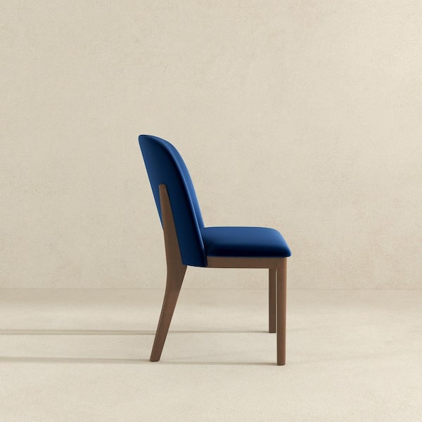 Robert Mid-Century Modern Navy Blue and Velvet Upholstered Dining Chair, Solid Wood Legs (Set of 2)