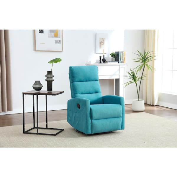 Roderick Modern Blue Polyester Upholstered Swivel Rocker Manual Recliner Chair with Storage Pockets