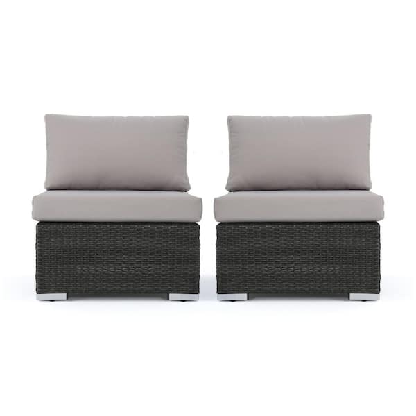 Rosen Gray Wicker Outdoor Armless Lounge Chair with Light Gray Cushions (2-Piece)