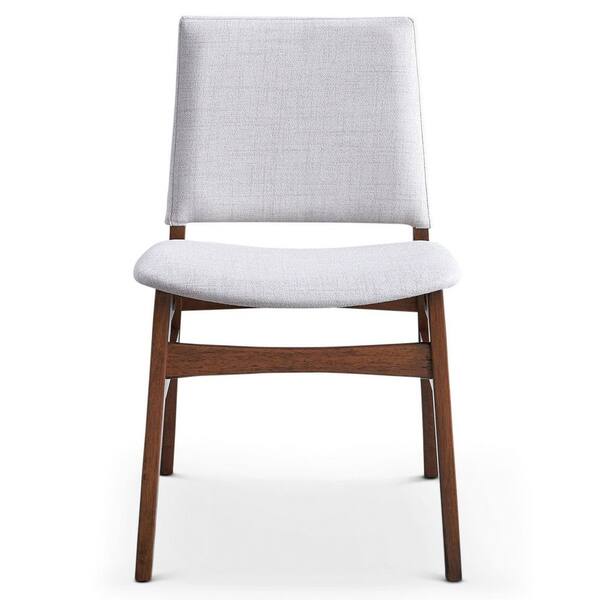 Ruby Mid-Century Modern Brown and Light Gray Linen Upholstered Dining Chair, Solid Wood Legs (Set of 2)