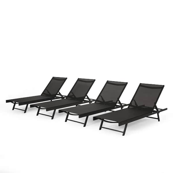Salton Black 4-Piece Metal Outdoor Patio Chaise Lounge
