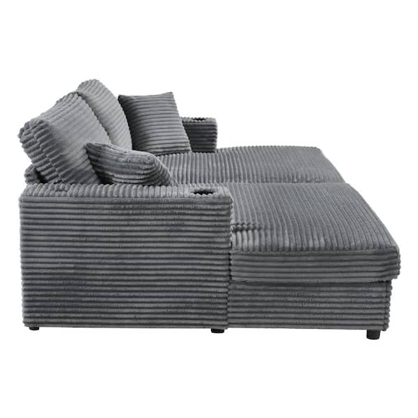 Scott 86.5 in. Dark Gray Modern Upholstered Corduroy Full Size Sectional Sofa Bed