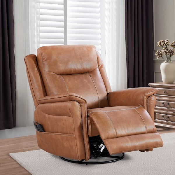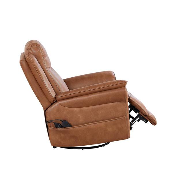 Silvaris Brown Modern Upholstered Power Swivel Recliner with Side Pocket