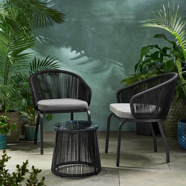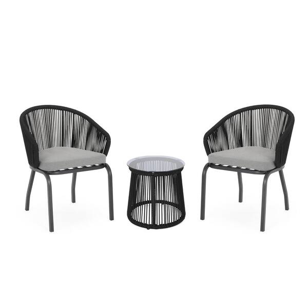 Skycrest Black 3-Piece Metal Outdoor Patio Conversation Seating Set with Grey Cushions