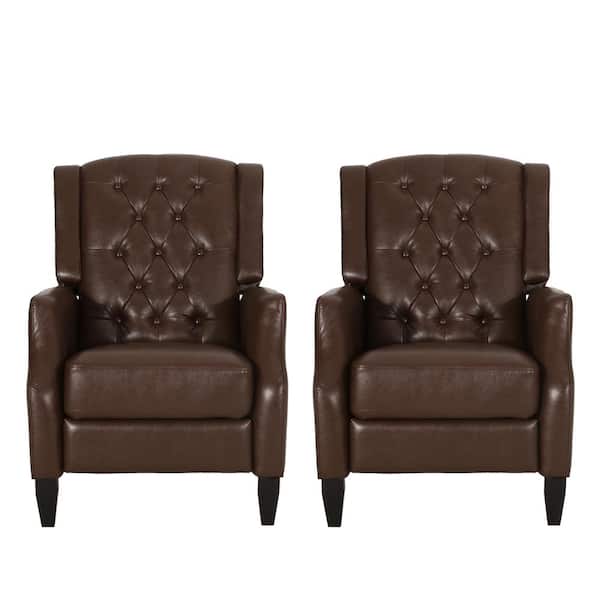 Steinaker Dark Brown Faux Leather Tufted Pushback Recliners (Set of 2)