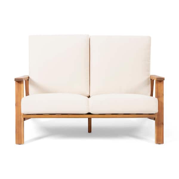 Swanton Outdoor Patio Acacia Wood Loveseat and Coffee Table Set with Cushions, Teak and Beige