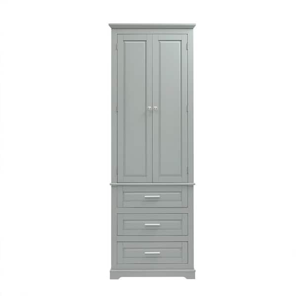 Torsi 24 in. W x 15.7 in. D x 70 in. H Grey Double Door Storage Linen Cabinet with Drawers and Adjustable Shelves