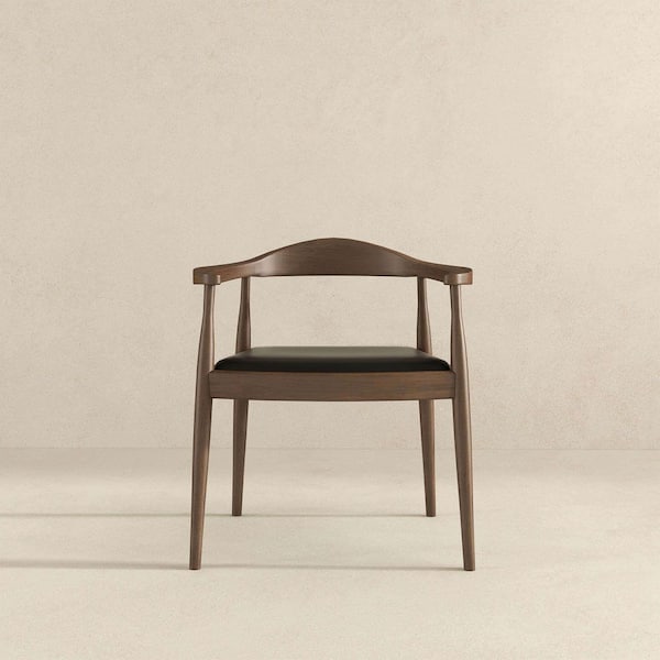 Trevor Mid-Century Modern Black and Brown Dining Chair, Solid Wood Legs, Armrests
