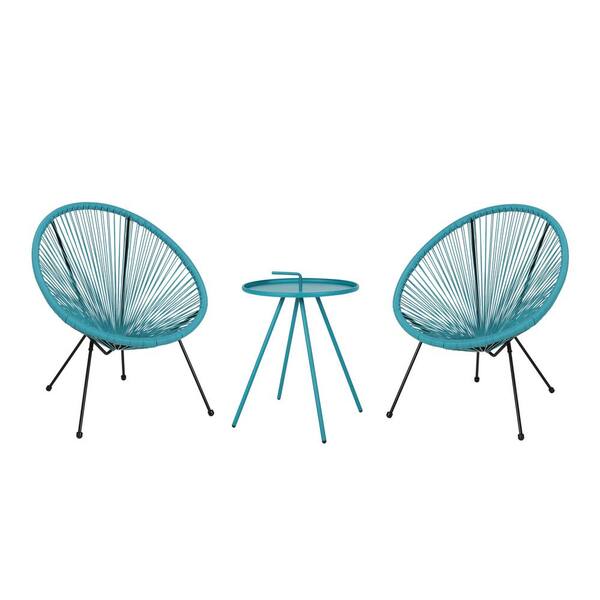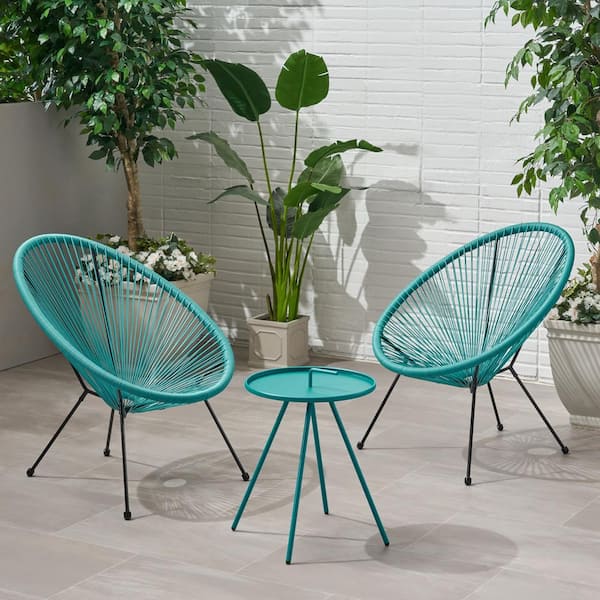 Vida Teak Brown 3-Piece Metal Outdoor Patio Conversation Seating Set