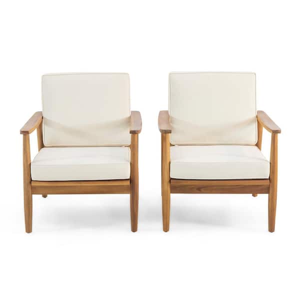Willowbrook Teak Brown Removable Cushions Wood Outdoor Patio Lounge Chair with Beige Cushions (2-Pack)