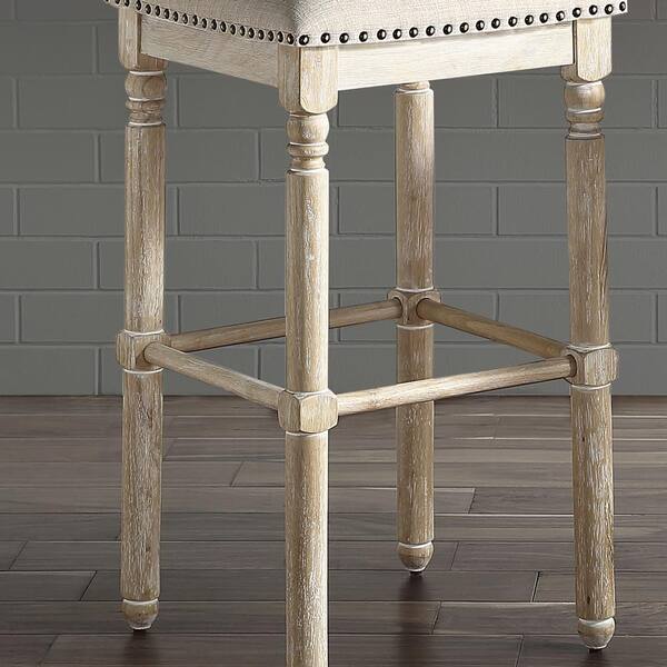 Xyphora 29.25 in. Tan White Wood Frame Upholstered Counter Stools with Nail Head Trim, Set of 2