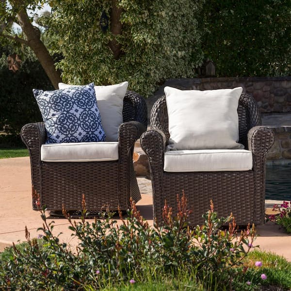 Yamileth Dark Brown Faux Rattan Outdoor Patio Rocking Chair with Beige Cushions (2-Pack)