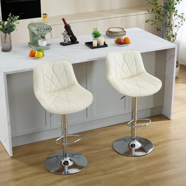Yeji 32.5 in. Cream Metal Base Adjustable Seat Height Swivel Bar & Counter Stool with Backrest, PU Leather, Set of 2