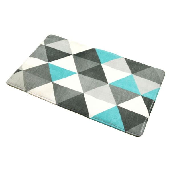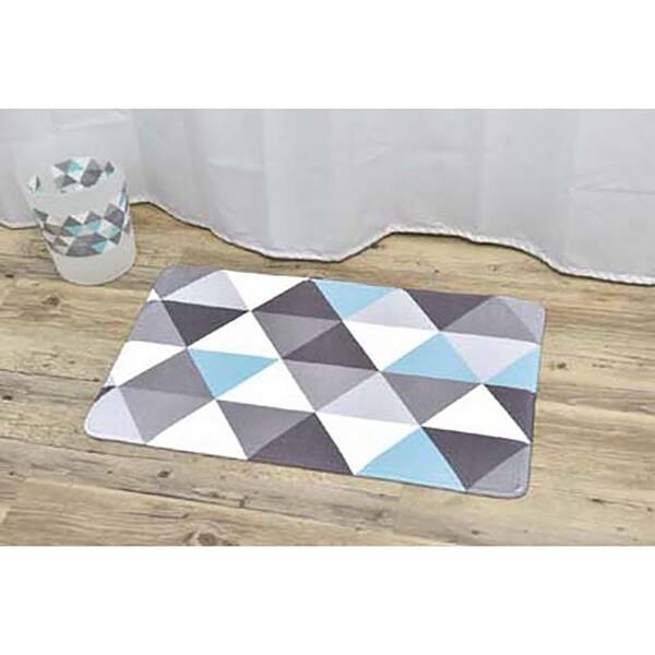 Nordik Blue Printed Microfiber Mat Bath Rug 30 in. L x 18 in. W