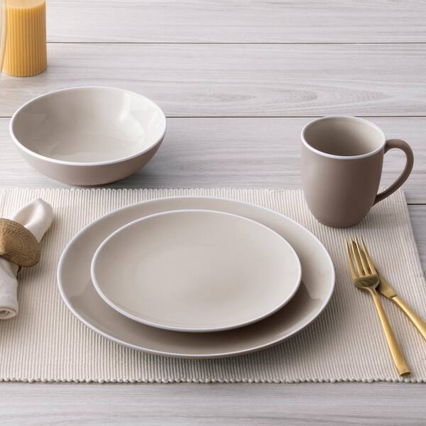 ColorTrio Clay 4-Piece (Tan) Porcelain Coupe Place Setting, Service for 1