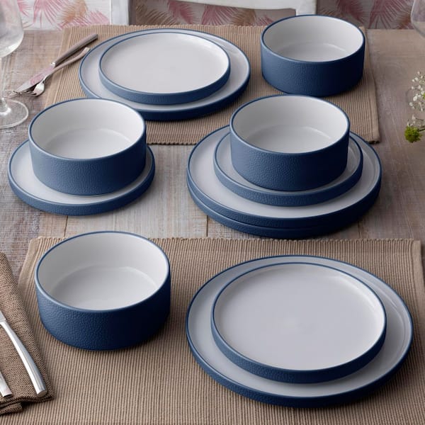 Colortex Stone Blue 9.75 in. Porcelain Dinner Plates, (Set of 4)