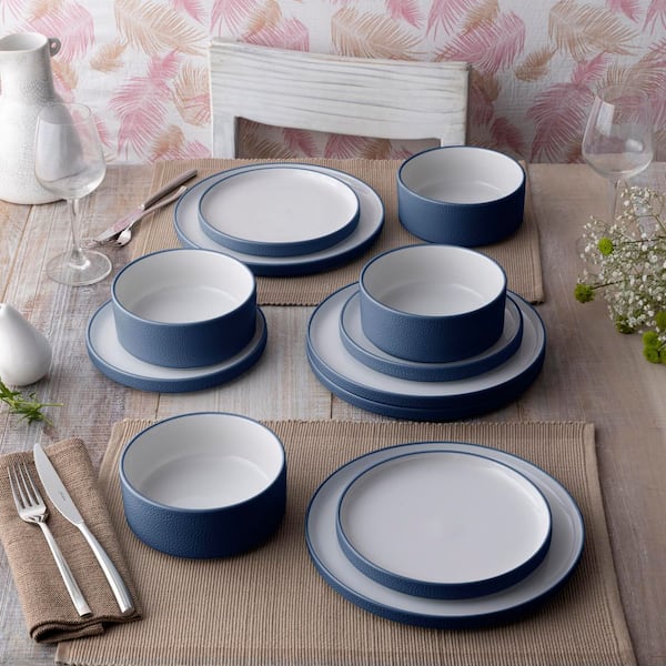 Colortex Stone Blue Porcelain 12-Piece Dinnerware Set, Service for 4