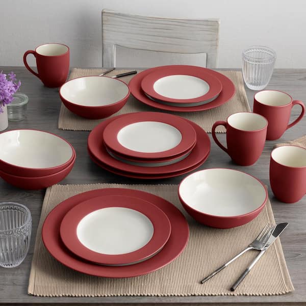 Colorwave Raspberry 16-Piece Rim (Cherry) Stoneware Dinnerware Set, Service For 4