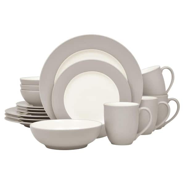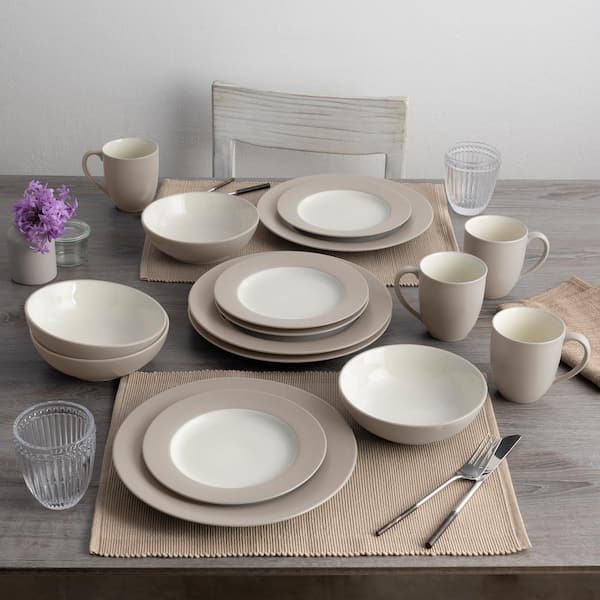 Colorwave Sand 16-Piece Rim (Tan) Stoneware Dinnerware Set, Service For 4