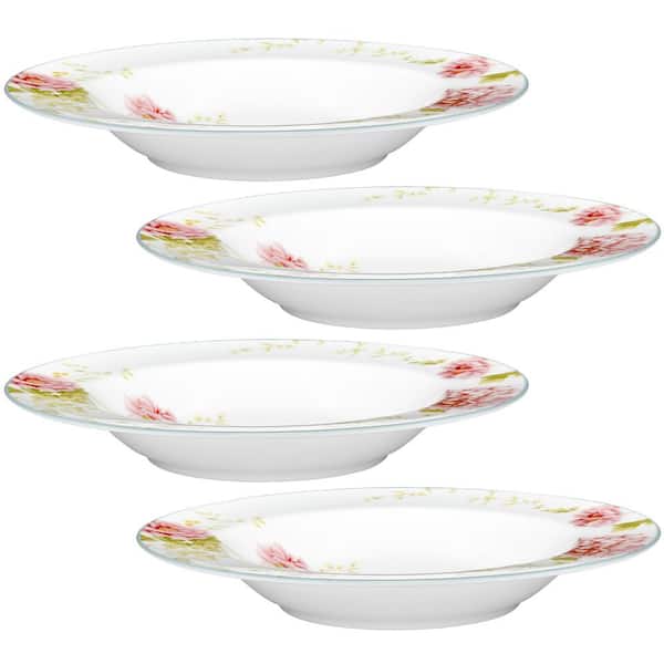 Peony Pageant 12 fl.oz White/Pink Bone China Soup Bowls 8-1/4 in. (Set of 4)