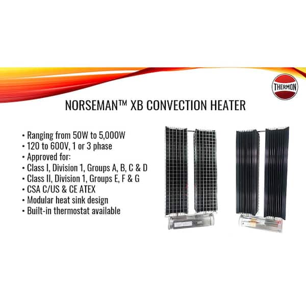 Explosion-Proof Convection Space Heater c/w Thermostat, 3000-Watt, 480-Volt, 3 Phase, Temp Code T2D, (3 Heaters)