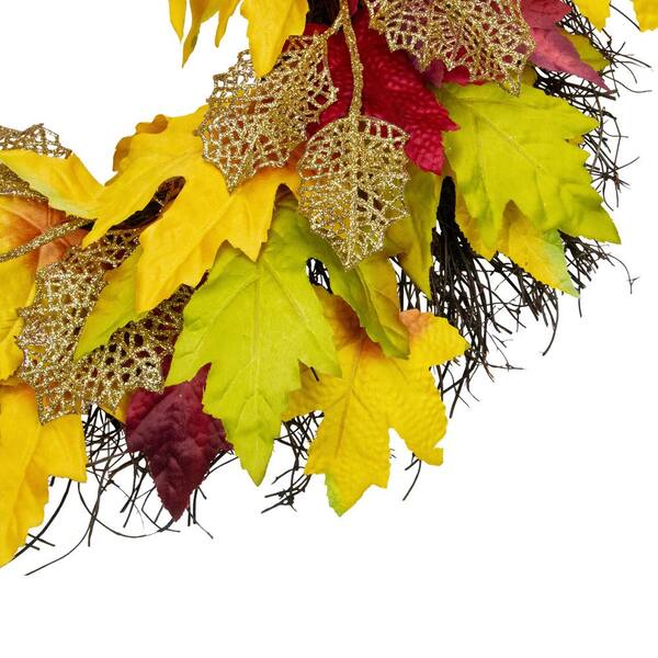 22 in. Unlit Autumn Harvest Maple Leaf Artificial Thanksgiving Floral Wreath