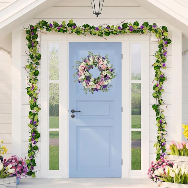 24 in. Mixed Floral and Fern Artificial Spring Wreath