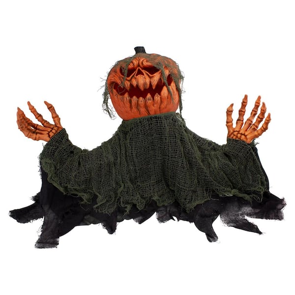 30 in. Black and Orange Incandescent Light Animated Pumpkin Halloween Prop