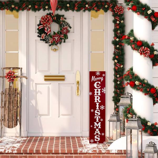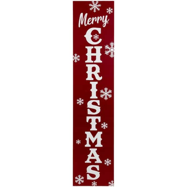 36 in. Red and White in. Merry Christmas in. and Snowflake Porch Board Sign Decoration