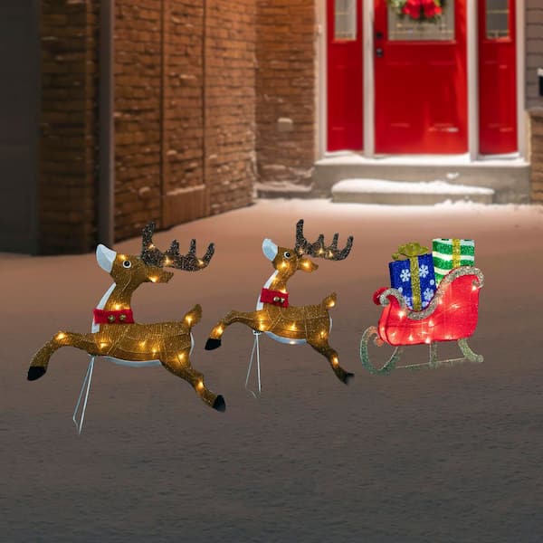 59 in. Lighted Reindeer with Sleigh Christmas Decoration