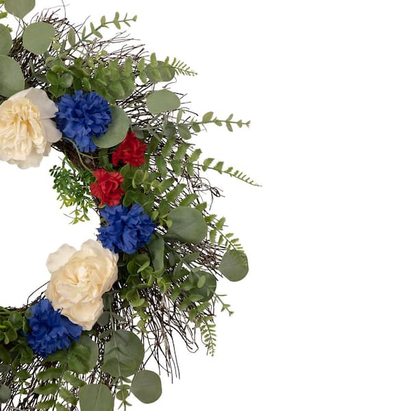 Americana Mixed Foliage And Florals Patriotic Wreath, 24 in., Unlit