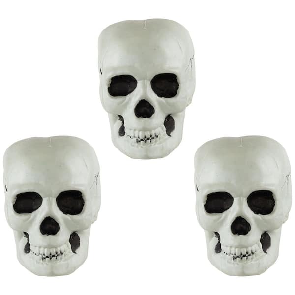 • Set of 3 skulls add a sinister touch to your Halloween decor
