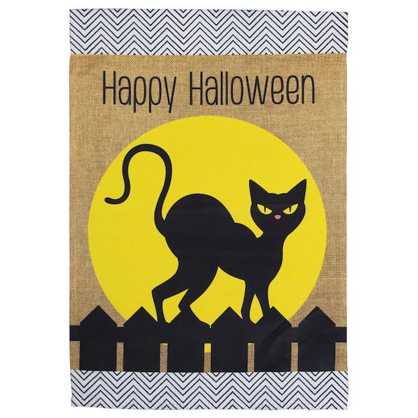 Black Cat "Happy Halloween" Outdoor Garden Flag-18" x 12.5"