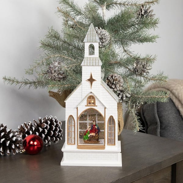 LED Lighted Holy Family Church Scene Christmas Snow Globe 12 in.