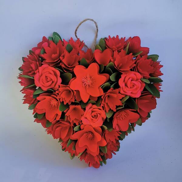 Mixed Floral with Wooden Flowers Artificial Valentine's Day Heart Wreath - 12.25 in.
