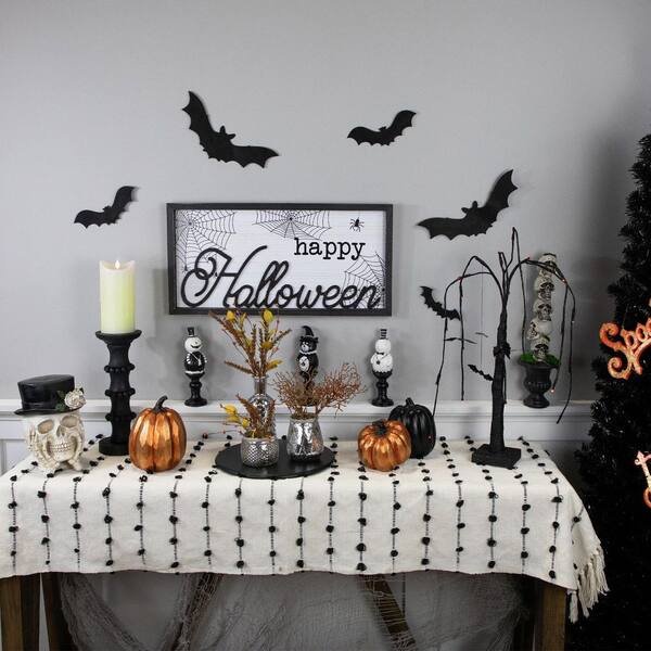 Rectangular Framed "Happy Halloween" Spider Web Wall Sign-23.5"