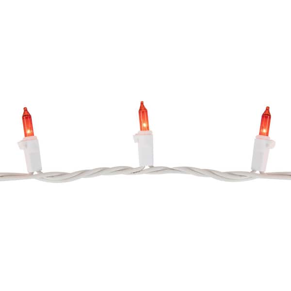 Set of 100 Orange Mini Christmas Lights 2.5 in. Spacing with White Wire